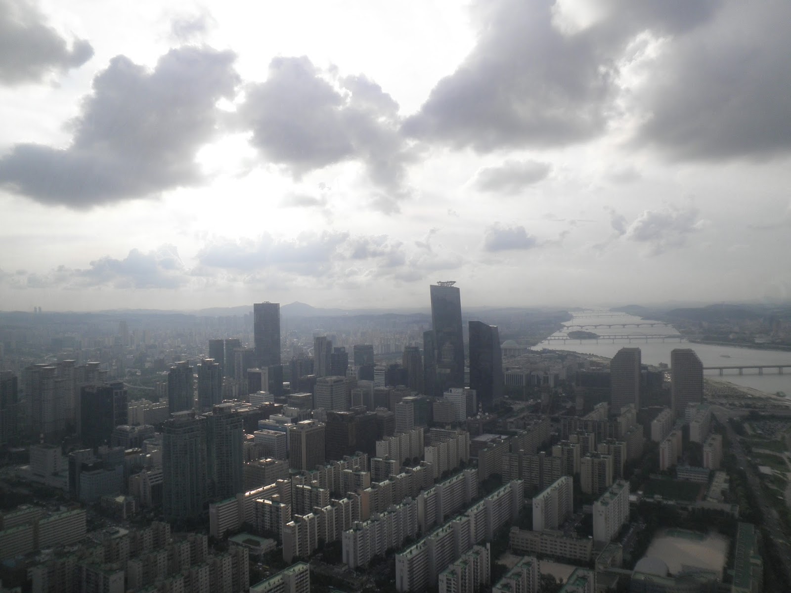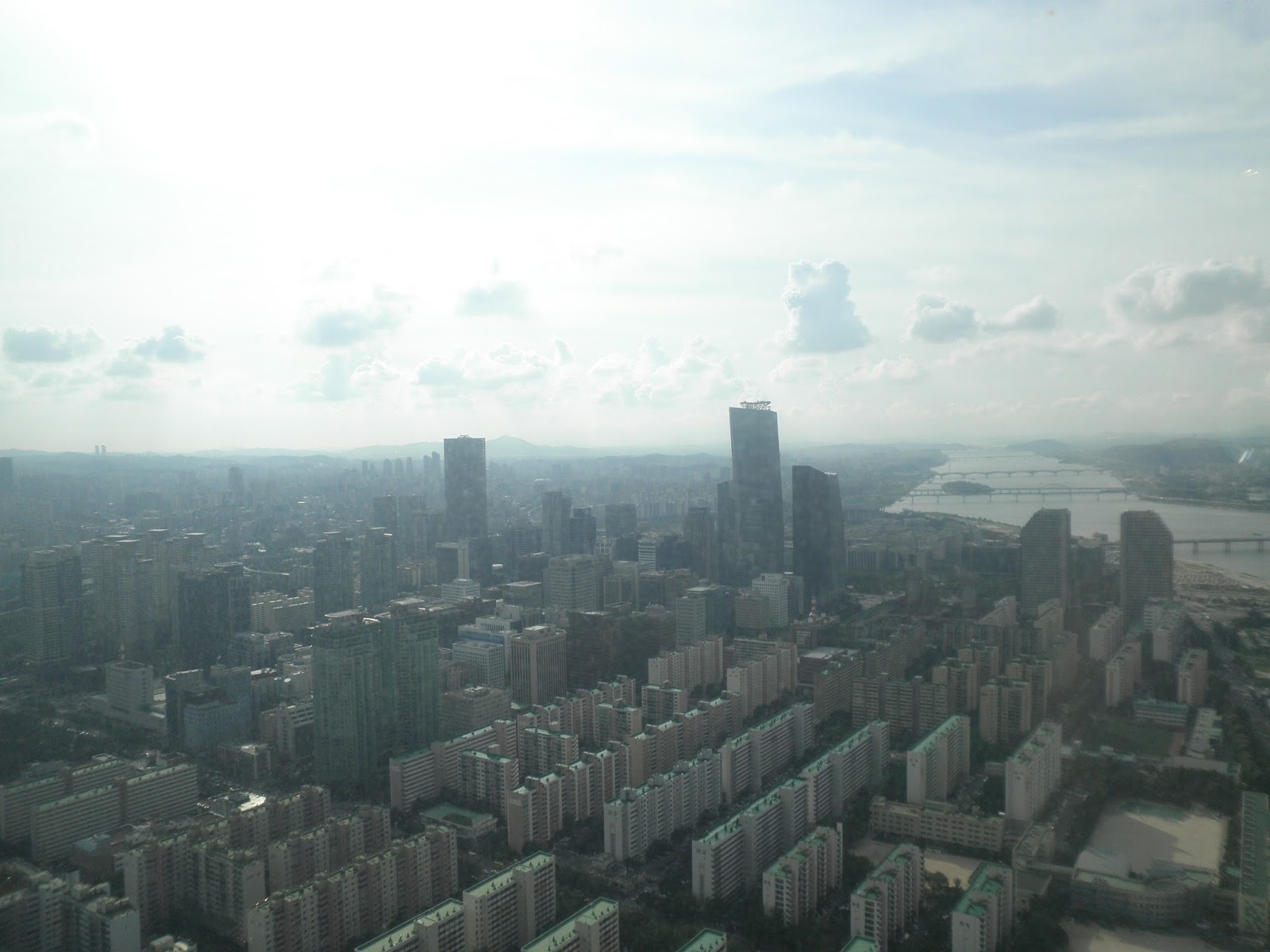 Ainsi arriva t-elle, tel un légo posé par inadvertance au milieu d'une fourmilière. Du haut de ses 264m, la 63 tower se dresse sur les abords de la Han river, fierté Sud-Coréenne à l'éclat doré. 63 étages, dont les 3 derniers sont innaccessibles au public. Un cinéma, un aquarium, un musée, un centre commercial, des super marchés... Une ville orthogonale à la ville !